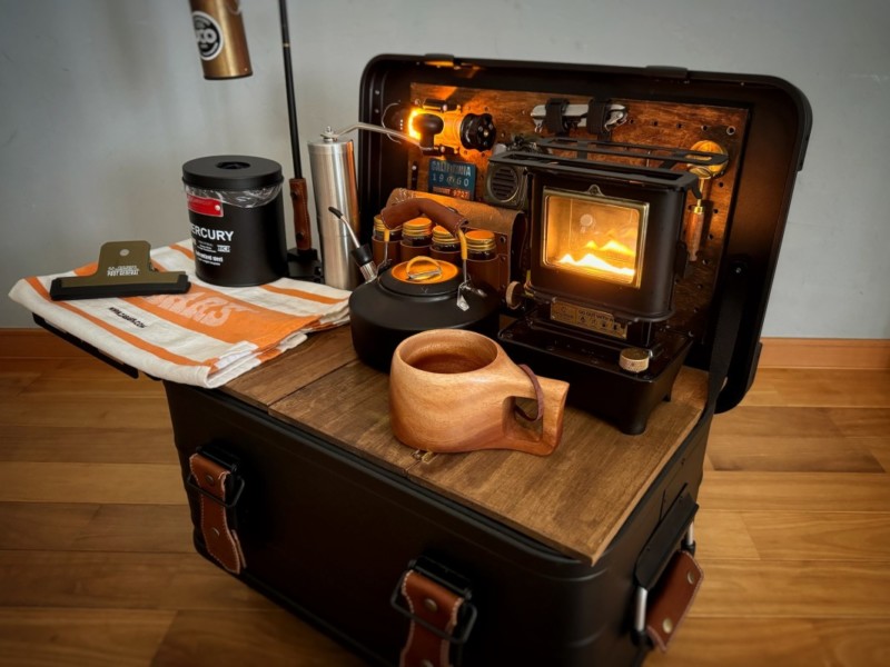 [アルミコンテナカフェ計画⑦] バックルベルトとハンドルカバーを友人がレザーで作ってくれた話。 そしてついに完成!!